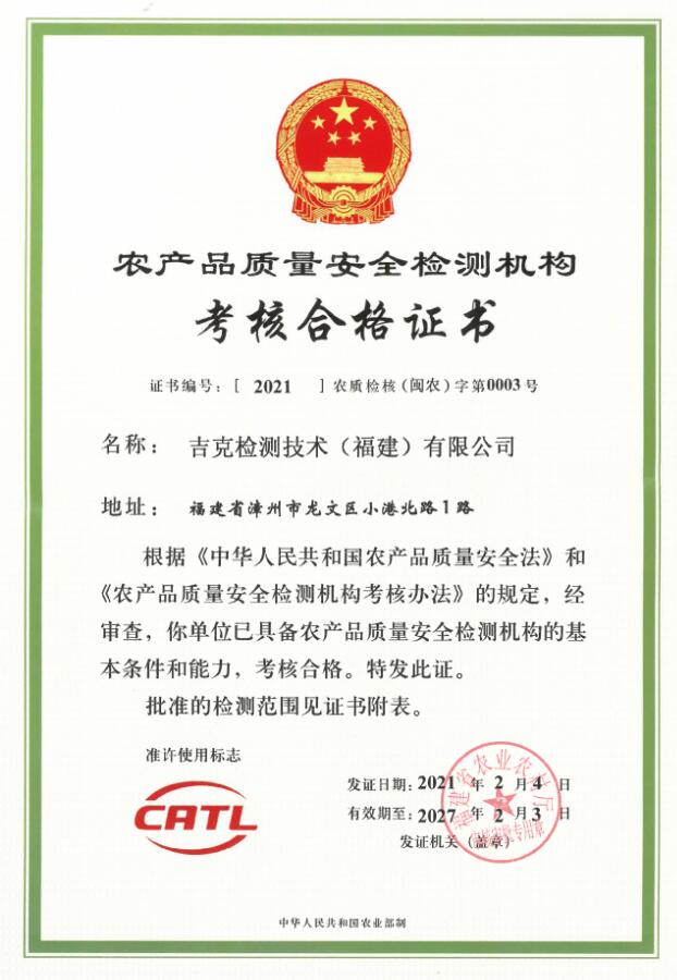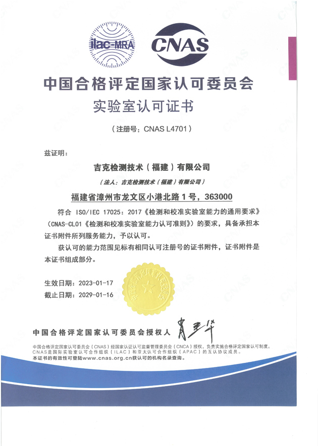 吉克檢測技術(shù)(福建)有限公司,位于福建省漳州市龍文區(qū)小港北路1號,于2019年8月注冊成立,是一家獨立的第三方檢測公司。公司已經(jīng)通過檢驗檢測機構(gòu)計量認(rèn)證(CMA)、農(nóng)產(chǎn)品質(zhì)量安全檢測機構(gòu)資質(zhì)認(rèn)證(CATL),獲得中國合格評定國家認(rèn)可委員會(CNAS)認(rèn)可。公司本著“嚴(yán)謹(jǐn)、規(guī)范、高效、協(xié)作”的原則和對客戶及社會高度負責(zé)的精神,充分利用本公司優(yōu)質(zhì)的檢測環(huán)境、先進的檢測設(shè)備和專業(yè)的技術(shù)人員,第一時間為客戶提供科學(xué)、公正、準(zhǔn)確的檢驗檢測報告。 公司實驗室面積1100多平方米,儀器設(shè)備兩百多臺(套),固定資產(chǎn)一千多萬元,在職員工31人,技術(shù)人員中的中高級職稱及同等能力人數(shù)占60%以上。我們的服...